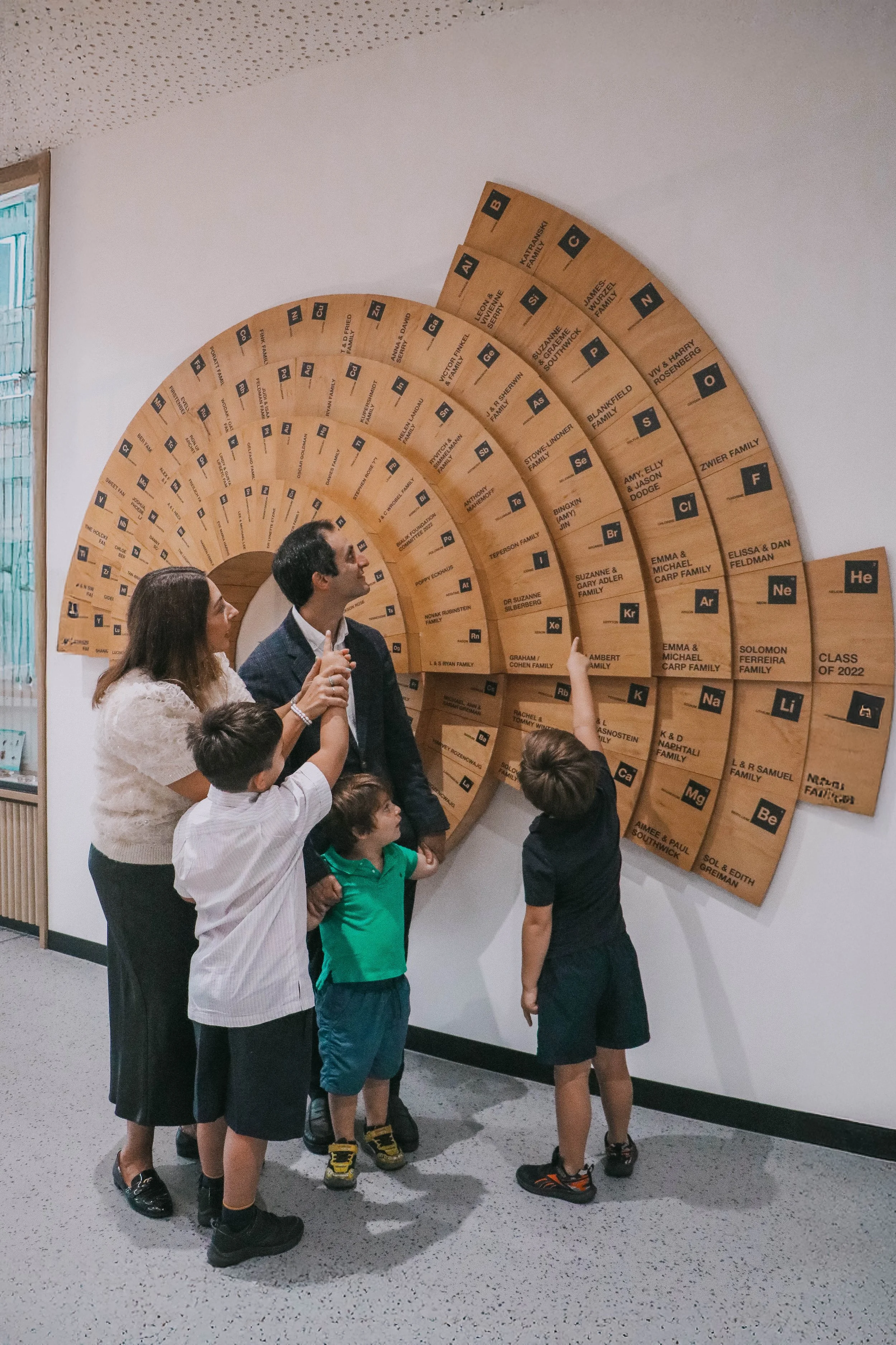 This bespoke 3D Periodic Table installation, featuring all 118 elements, is more than a scientific display. Families were invited to connect with it in a meaningful way, choosing elements that reflected their stories: honouring loved ones, marking life's Simchas, and creating enduring legacies for future generations.